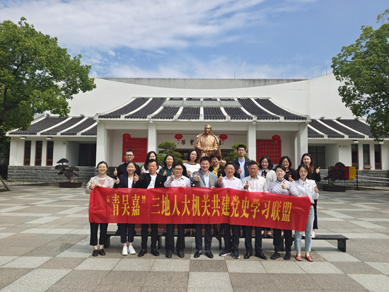 为庆祝中国共产党成立100周年,重温党的光辉历史,创新深化党史学习教育,“青吴嘉”三地人大机关牢牢把握长三角生态绿色一体化发展示范区国家战略机遇,5月21日,三地人大机关正式成立党史学习联盟,旨在通过“共建组织、共抓队伍、共享资源、共谋发展”,共创三地人大机关党建工作新格局。“青吴嘉”三地人大常委会办公室主任、机关支部支委会成员等参加活动。